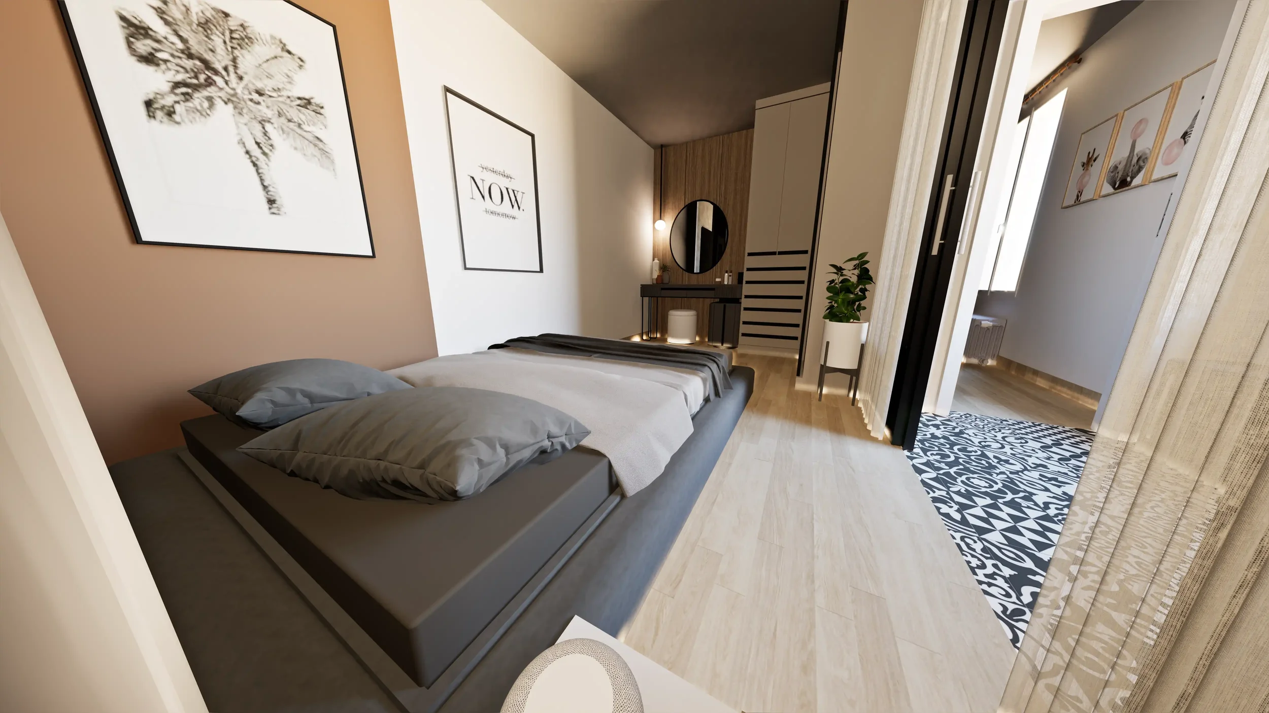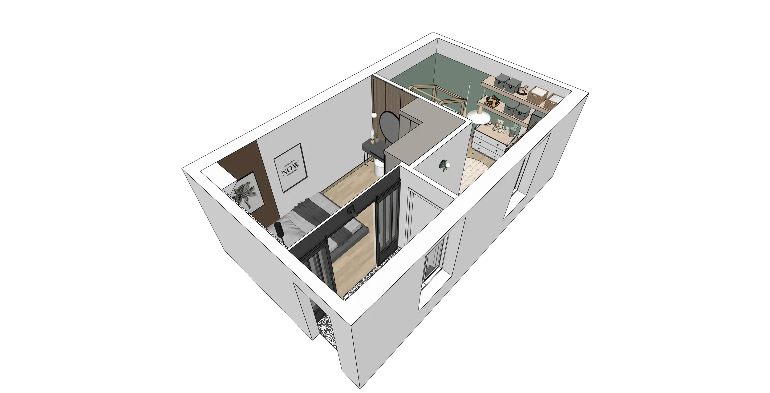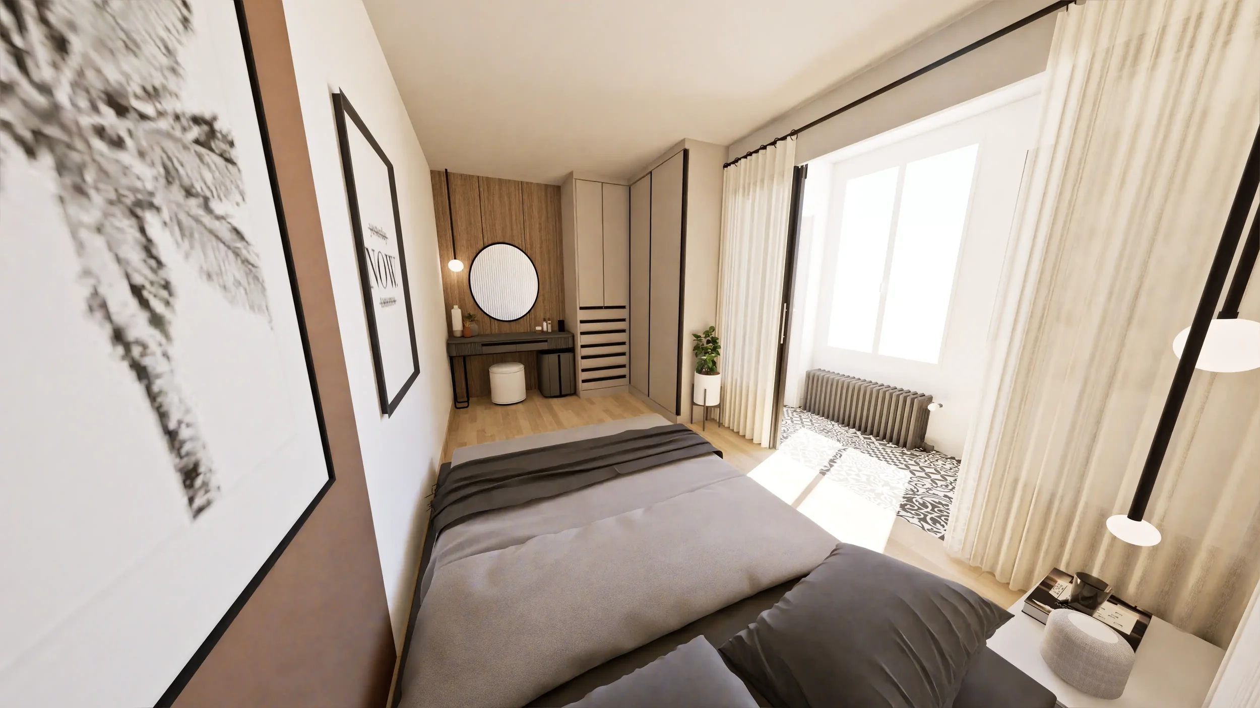 Ce projet vise à transformer deux chambres en enfilade en espaces vraiment indépendants. La circulation a été repensée pour préserver l’intimité et améliorer la fonctionnalité, sans engager de gros travaux.